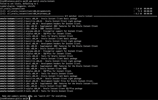 In order to connect to an Oracle database from a machine, we will use the Oracle Instant Client software. You can download the software for the different operating systems, but as our VM is running Oracle Linux we can install it with just a few commands: